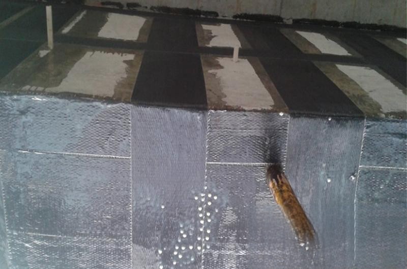(5)碳纖維布張貼:依照規(guī)劃要求裁剪碳纖維布,制造浸漬膠,選用滾筒或毛刷將浸漬膠均勻涂改于所張貼部位外表,角落和搭接處恰當(dāng)多涂改膠水,用潤(rùn)滑滾筒或碳纖維刮刀在碳纖維布外表沿同一方向重復(fù)滾壓至膠料滲出碳纖維布外外表,去除氣泡,使碳纖維布充沛滋潤(rùn)膠料。需求多層張貼時(shí),應(yīng)重復(fù)以上過程,待碳纖維外表指觸感枯燥為宜,方可進(jìn)行下一層碳纖維布的張貼。